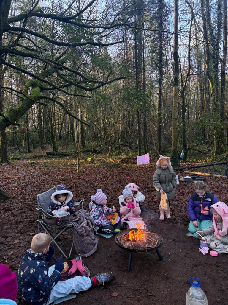 Lón timpeall na tine champa, craic agus spraoi ag Scoil na Foraoise inniu le Naíonáin Mhóra 🏕️🔥