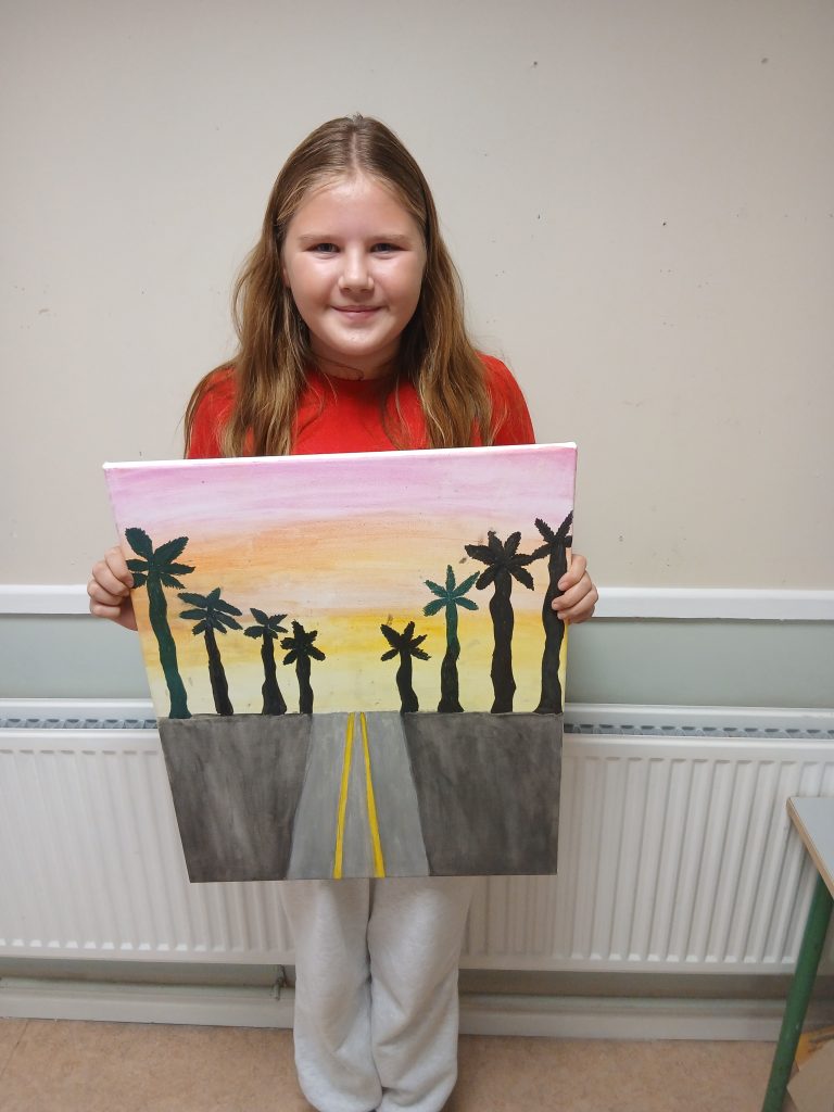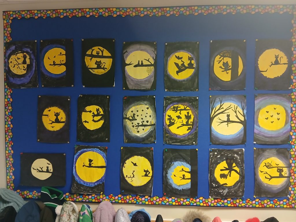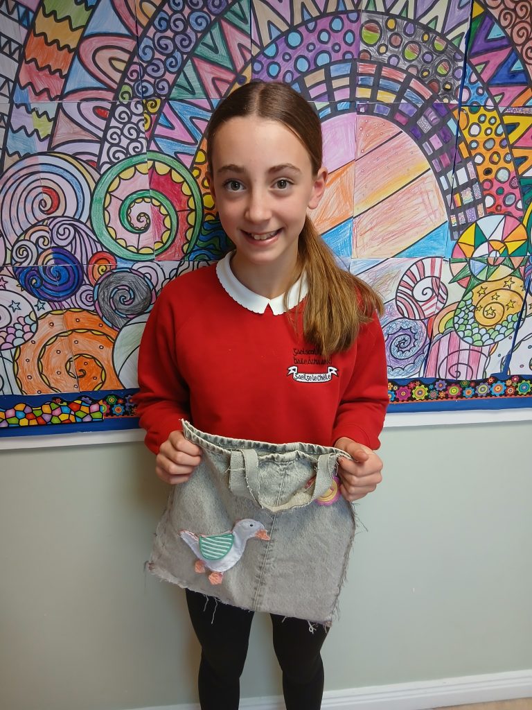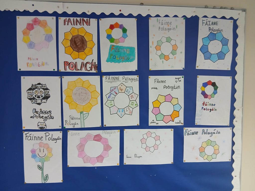 Rinne daltaí Rang a 6 an-obair le línte agus uillinneacha do Seachtain Mata ar an Luain.